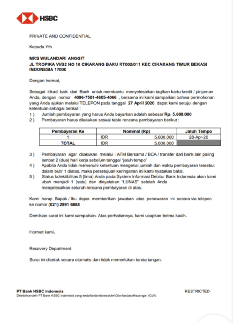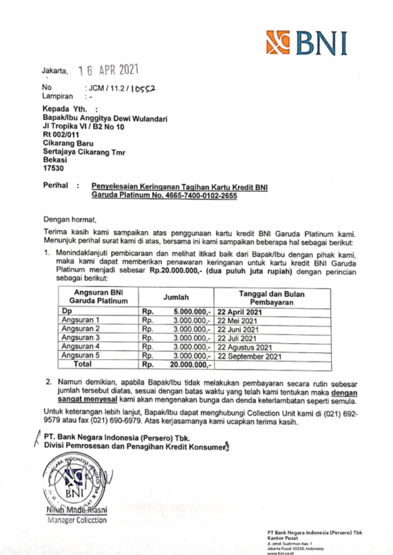 For those of you who are currently having a headache with credit card/KTA billing problems because minimum payments have not been completed, are no longer able to make payments to the bank because of high interest rates or are having a headache with bank/debt collector collections that terrorize you all the time, please allow us to help you, we are professional consultants specializing in handling credit card and KTA mediation. We offer mediation/negotiation services between customers and the bank