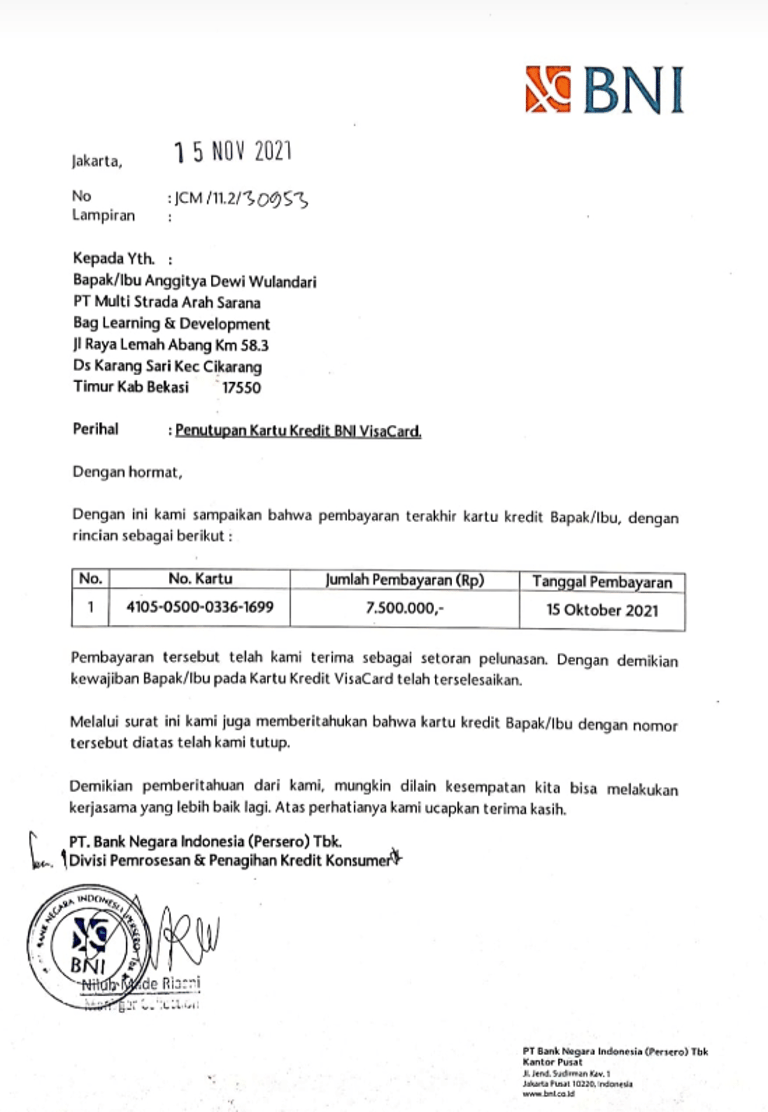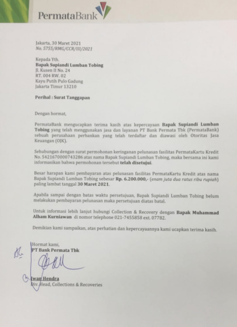 Received a letter in full from the relevant bank to restore the good name of Bank Indonesia (BI)
